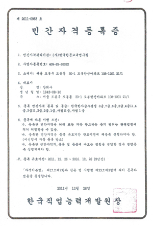 5) 자격기본법 규정에 따라 등록한 등록 민간자격이고, 공인 민간자격이 아닙니다.
